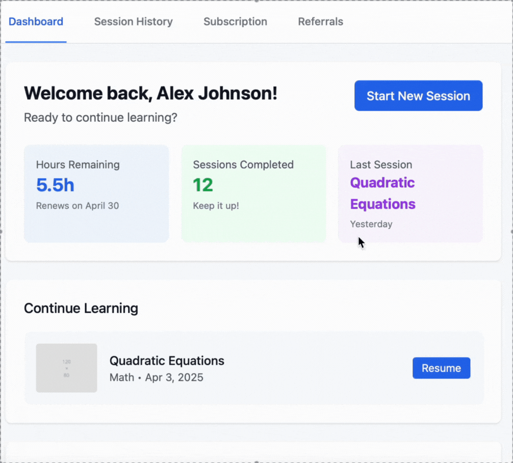 Review your tutoring sessions anytime with complete voice and visual playback to reinforce what you've learned.